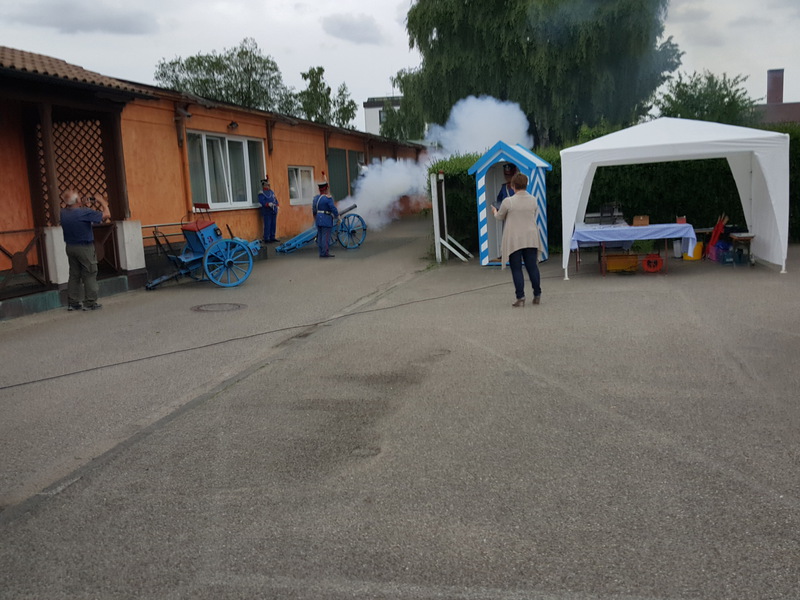 Neben der Laudatio mit Ehrensalut, hatten wie wieder unsere kleine Zinngießerei dabei, sowie das Wachhäusschen mit unserem standhaftesten Artilleristen.
